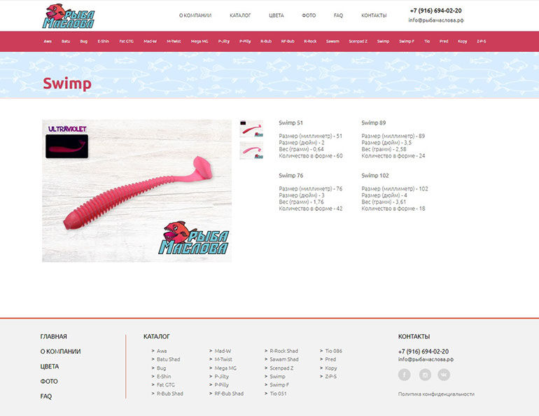 Рыба Маслова - производство рыболовных приманок. Нашей командой созданы сайт, соцсети, каталоги, логотип.
